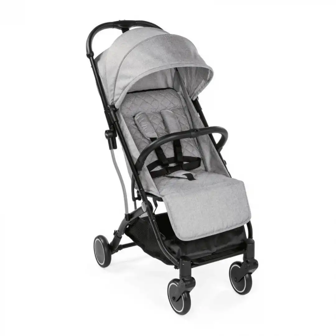 Açılabilir tutma kolu sayesinde katlandığında valiz gibi kolayca taşınabilen bir bebek arabası olan Chicco Trolley Me, tamamen yatırılabilir çok pozisyonlu sırtlık ayarı sayesinde de doğumdan itibaren kullanılabilir